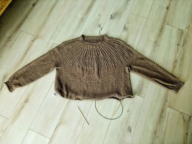 свитер Rustic по модели @lana_bakaeva из ниток @dropsdesign Belle цвета "лесной коричневый" (Waldbraun) спицами 3,5мм