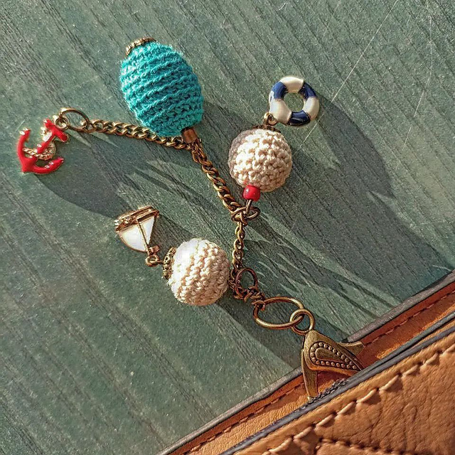 ничего особенного, шарики да висюльки, но со своей историей :) перед тем, как ехать отдыхать на Родос, я узнала, что моя подруга по инстаграму тоже туда едет, и почти в то же самое время! так что я сделала подвеску специально для неё, с намёком, для воспоминаний. в свою очередь, она одарила меня собственным рисунком на ту же морскую-отдыхательную тему :))))