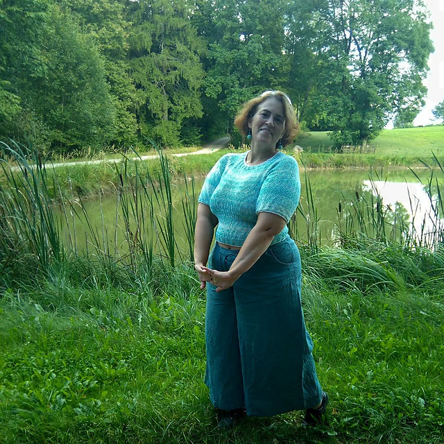 2. футболка "Summer vacation". начала в конце июня, закончила в конце июля. по поводу носить и позировать - аналогично. хоть и не свитер, хлопок, связанный неплотно, всё равно - жарко. она для такого, нормального литовского лета.