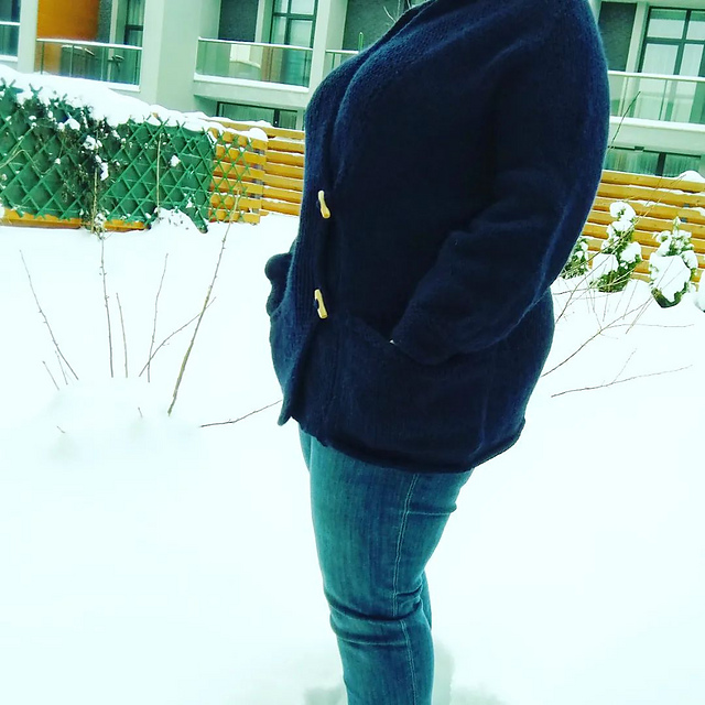 Кардиган Iced by Carol Feller. нитки DROPS Andes я купила в сентябре по хорошей акции, конкретно под этот самый проект (редкий случай). но мне захотелось иметь не свитер, а именно кофту на пуговицах, большую, тёплую. имею :)))) сегодня надела на работу и ничего, греет! про саму пряжу я писала пару постов назад, она мне не очень, но с помощью мирового разума я готовый кардиган постирала в машине с добавлением уксуса, и вроде ничего, одежду и тело мне не покрасил :)