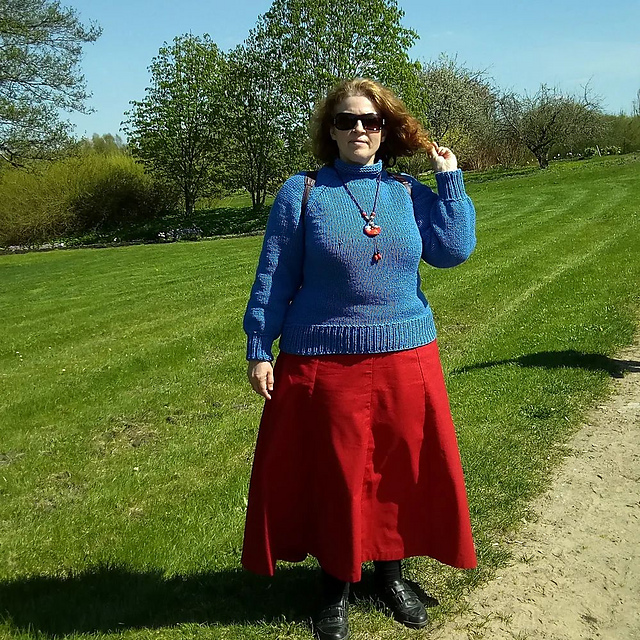 Blue jeans (потому что цвет блю, а нитки джинс :)))) Базовый свитер регланом сверху, в три нити. нитки YarnArt Jeans, цвет 16. купила именно для этой цели,что не всегда бывает :) он большой и удобный. и даже достаточно тёплый.