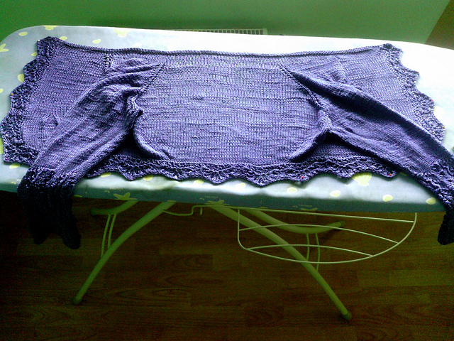 ну в общем так, ребята. довязала я болеро, выстирала, блокировала, погладила,