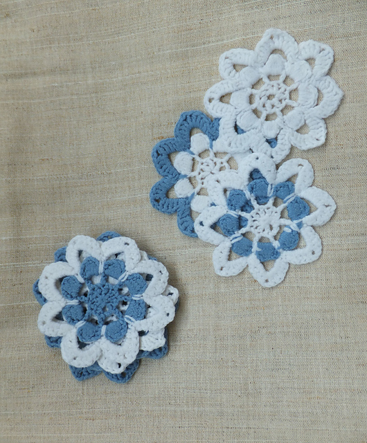 меня пригласили в гости, и в последние два дня лета я срочно вязала подарок. что можно связать так просто? я выбрала подставки для кружек - мелкое, быстрое, ни к чему не обязывающее :) рисунок - цветочек всего в 6 рядов - с просторов интернета, а вот откуда конкретно, уже не помню.