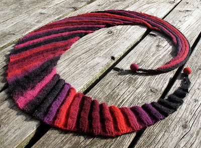 вообще-то я сейчас вяжу шарф свекрови узором "павлиний хвост" из довольно тонких ниток :( и у меня валяется долговяз - шарф "листья"... ех...