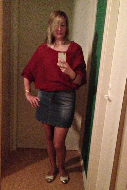 из рыжего рованского твида.а пока... шапку я закончила, и вяжу митенки :) почему? потому что купила себе платье с рукавами 3/4, и потому что нашла остаток красных мохеровых ниток, из которых и связан упомянутый парижский... одну уже связала. ёж больной на всю голову, точно :)
