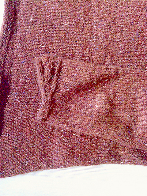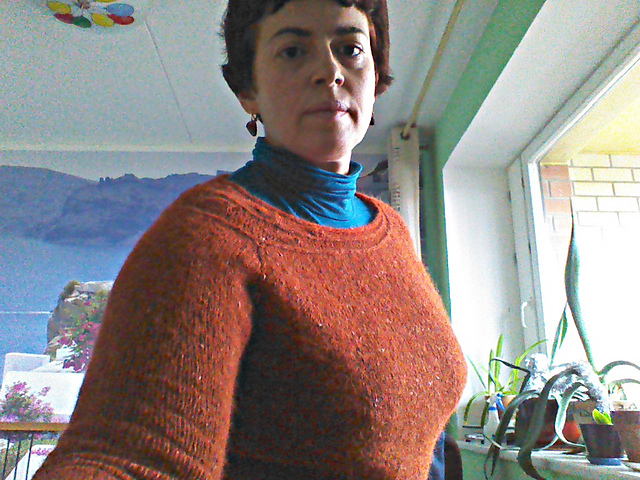 остальное вязалось очень просто. сверху вниз по кругу, но с выточками и прочими выпердронами. (кандибоберами, как говорила моя бабушка). дизайнером проделана огромная работа - всё высчитано до петелечки на 8 размеров. самое трудное было подсчитать, какой нужен именно мне при данной плотности вязания. но я это сделала, и свитер лёг прекрасно.