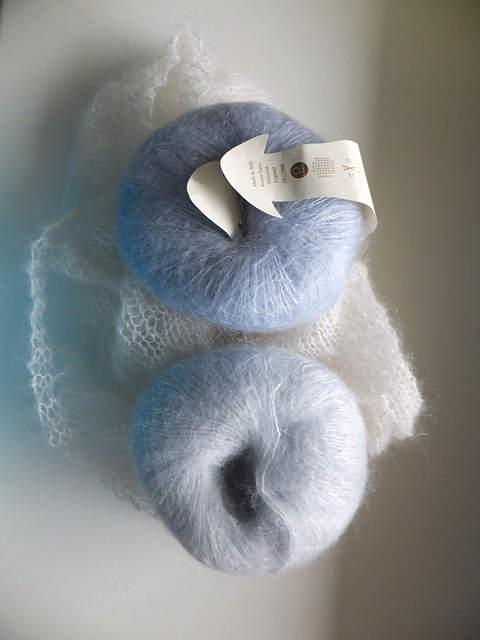 1. в процессе - шаль Dew Drops на заказ. знакомая увидала у меня шаль из мохера и восхотела. купила тоже ровановский мохер, красиво очень подобрала цвета: три моточка, один белый, другой