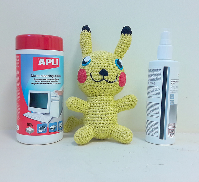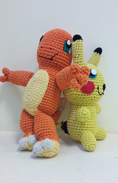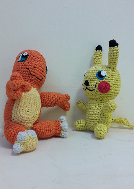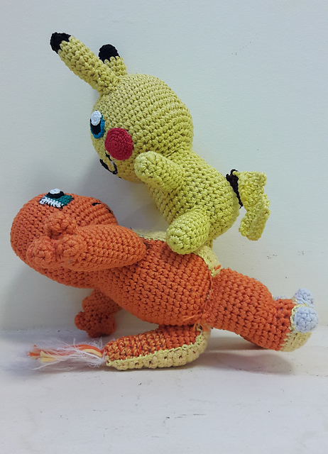 ну да ладно, я о другом хотела... принесла на работу и отсняла при дневном свете наконец законченного Пикачу. Вера была недовольна - она с ним спит, а я его по грязной работе таскала! заверила её, что лично мыла тумбочку и кусок дерева. правда, та каменная полка, на которой они вдвоём с Чармандером, давно не мыта... но когда-то была, Лина её для еды использует :))))
