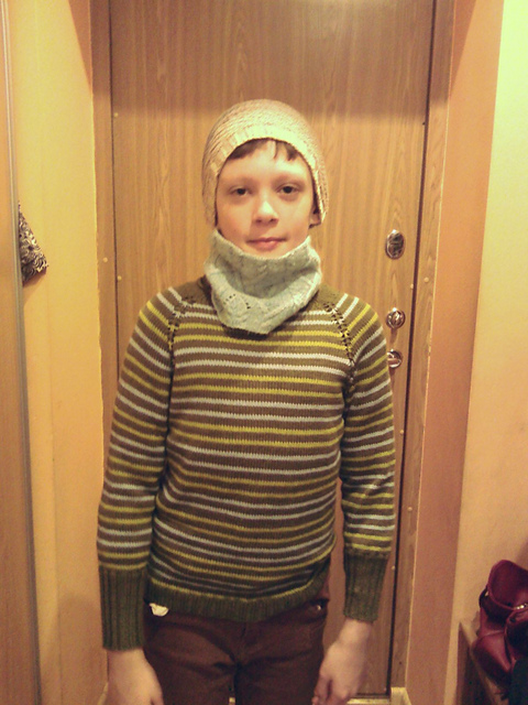 обвязанный ребёнок :))))) из-за холода натянула на него свой коул и шапочку :) идёт нереально :)но я не о том. свитер сделан хорошо, аккуратно, "правильно". но он обтягивает ребенка со страшной силой! :( мне не хочется, конечно, признать, что все мои усилия насмарку (и N денег за нитки)...