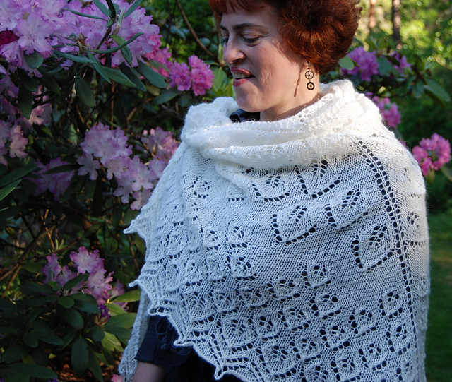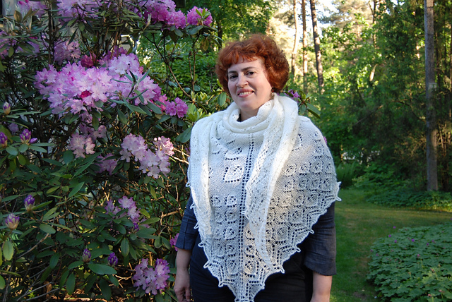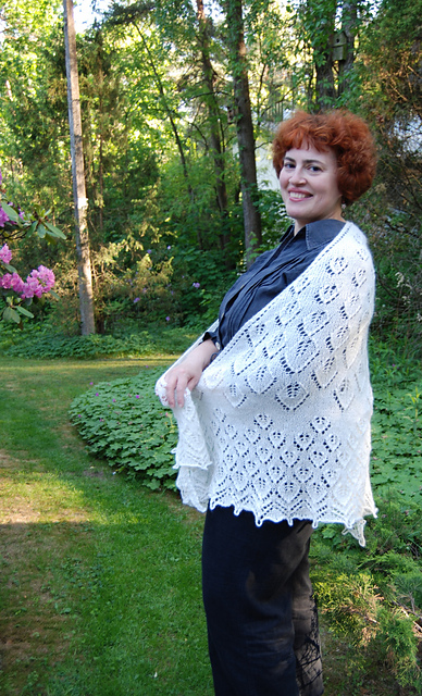 мне заказали шаль для пожилой дамы. поначалу было единственное требование - белый или молочный цвет. потом мы с подругой посоветовались и остановились на модели Fresh Apple by Anna Ryabovа.
