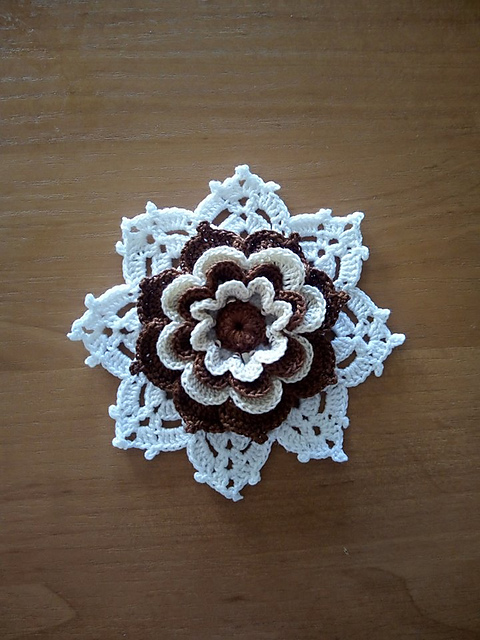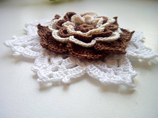 это брошка, и довольно немаленькая. где-то подглядела идею с "кружевами" из-под цветка. мне понравилось, ндо будет другой вариант попробовать, не ирландский.