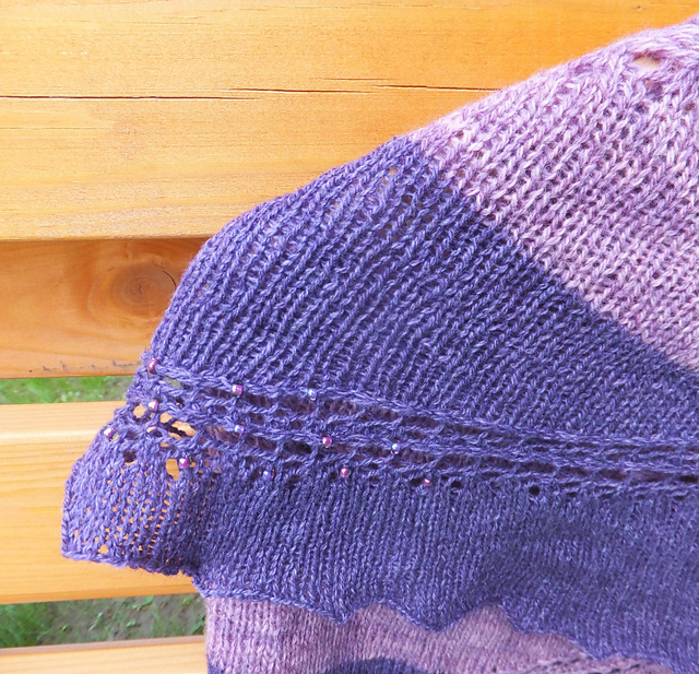покажу еще вязалочки. у меня ж ни дня без ряда :) довязываем долговязы, подбираем хвосты. шаль "Wirbel" by Sue Berg я начинала в прошлом году в отпуске, потом отложила, продолжила снова в отпуске, и закончила дома, добавляя бисер.