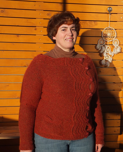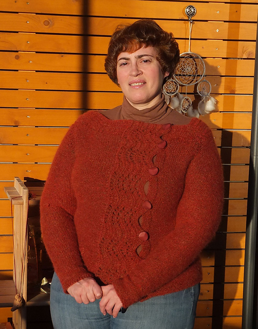 его также можно назвать "долговязом года", я начала его вязать в октябре, потом просто отставляла для мелких осенних и зимних проектов. очень довольна (пока) пряжей: Garnstudio DROPS Air. цвет (13) называется оранжевым, на самом деле какой-то красно-зеленый меланж, нитки очень мягкие, приятные на ощупь и теплые (надела сегодня). ушло всего 7 мотков! один остался, думаю, на что употребить... спицы 4.0