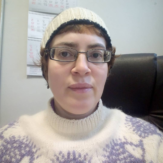 модель Snowfall Hat by Sara Setters. начала вязать 2 января, до НГ только перемотала намотанные на бумажки бобины в клубки. дети помогали мотать :) вязала на круговых спицах, использовала три набора: набрала черную нить на 4.0, резинку вязала на 3.25, а жаккард - на 4.5 мм. в описании явно использовались более толстые нитки, потому что мне пришлось сделать шапку шире, иначе на голову не налезала :)
