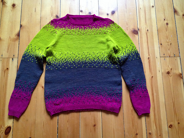 a вязальщица одно вяжет, другое планирует, третье примечает. в планах что-то сделать из толстых жёлтых ниток, которых мне отдали два клубка. я в прошлом году начала из них вязать кокетку, но очень плотно, нужно распустить и попробовать на более толстых спицах. можно скомбинировать с черной полушерстью, которой мне отдали довольно много, она тонкая, с жёлтой сравниться только в три сложения. может, попробовать что-то вот такое?