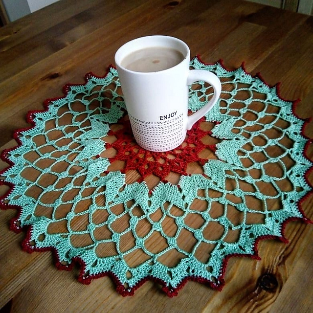 погладила и подкрахмалила связанную несколько дней назад салфетку. чуть позже, когда будем уже предновогодний марафет наводить, использую в композЫции :)