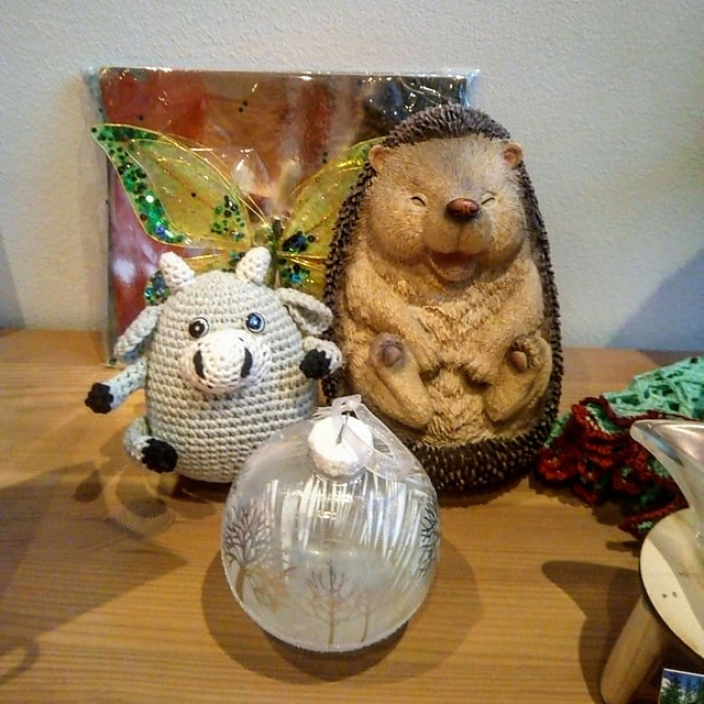 на последней фоте - с ёжом, новым шариком и бабочкой из адвентовского подарка