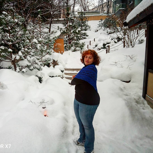 в воскресенье сходили мы в японский сад, и там я её того. куртку сняла, шаль накинула, быстро покрутилась туда-сюда :)