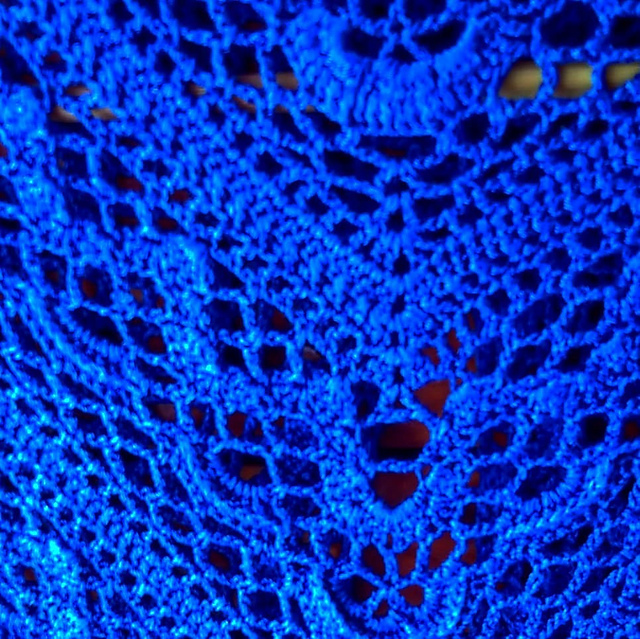 как блестит, а?! крючок 3,5, потом взяла 3,75 мм. вязала, судя по записям, 9 дней. довольно быстро. разогналась - а уж и нитки кончились. я на втором раппорте немного поимпровизировала, третий вообще вышел вольный и неполный