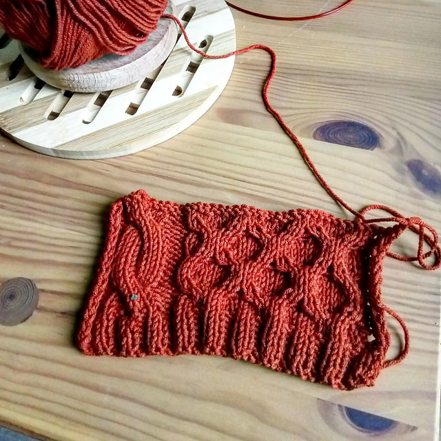 Пробую новый узор для шапки, увидела тут у brooklyn tweed. узор простой, сразу нашла в сети схему (если что, рекомедую сайт http://avercheva.ru) но эффектный. плотный такой и фактурный. одиночную косу можно варьировать. вот этот образец связан в одну нить, но шапку я хочу в две - плотнее. на осень уже чтоб или даже на зиму :) нитки - остатки от оранжевого свитера, Alize Cotton Gold. будет комплект :) это не считая шали... шаль вроде как к концу идёт, но как обычно - последние ряды самые длинные...