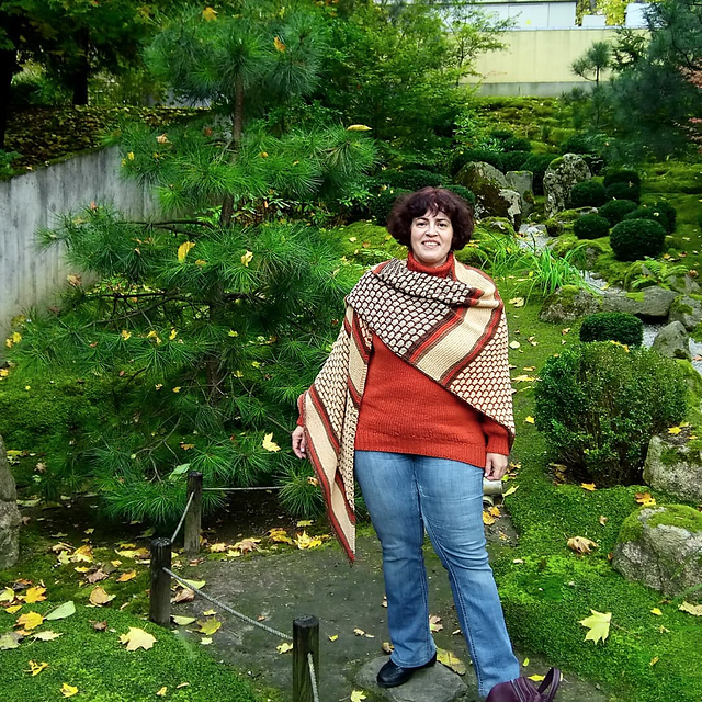 самая моя большая шаль. а почему спешила - очень уж хотелось пофотографировать её в красивом месте и при свете дня - то есть в выходной. ещё и осень золотую дали :)
