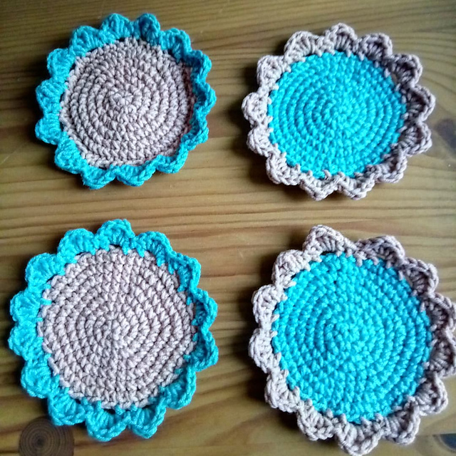 еще в адвентовские подарки пошли подставки для кружек (или бокалов). связала два комплекта