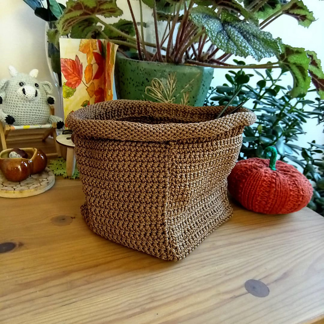 после подвесок я слегка выдохнула и закончила недовяз - корзину для вязальных проектов из шнурка